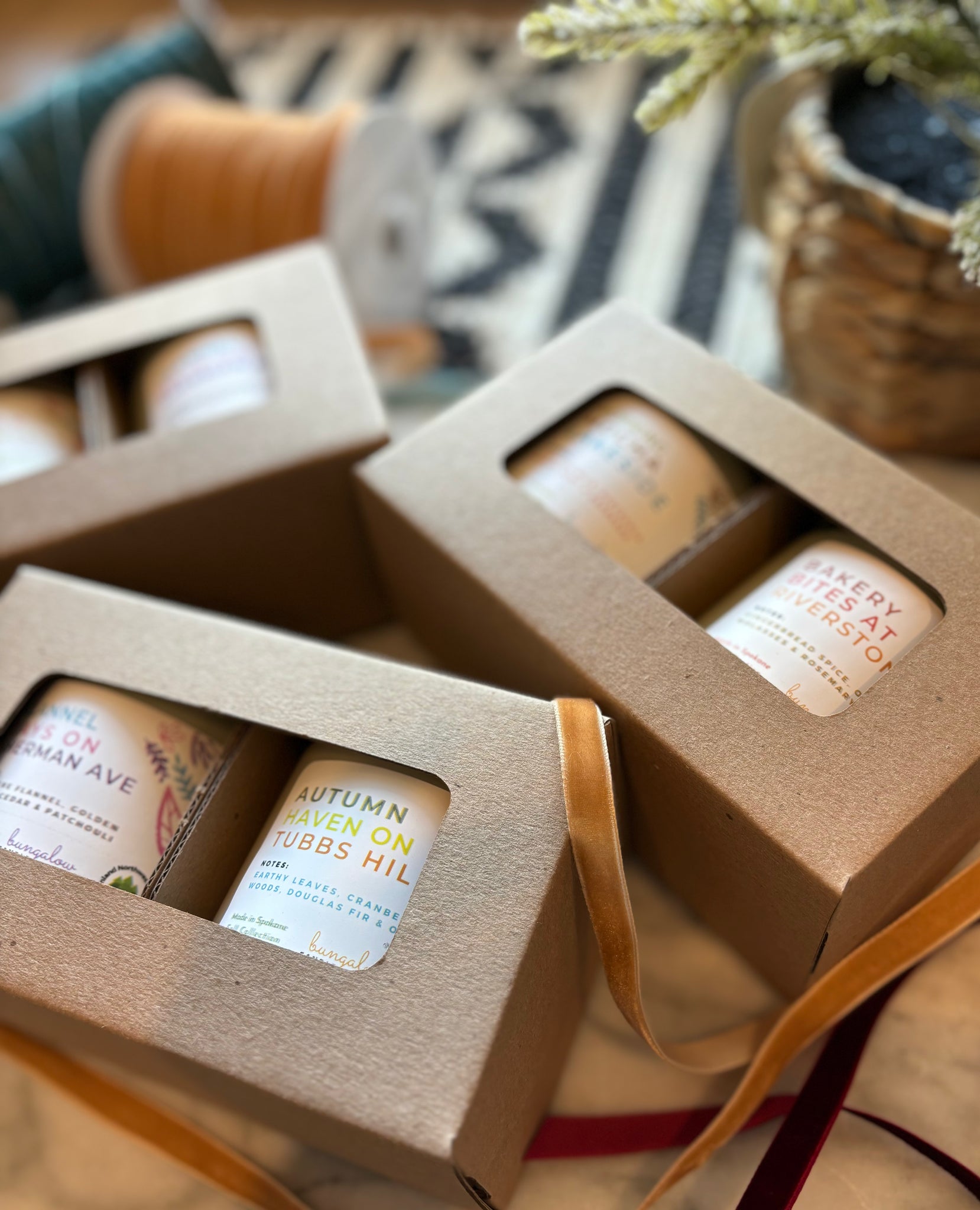 This candle duo gift set comes with 2 of our Coeur d'Alene-inspired 8 oz soy candles. Choose between five scent combos.