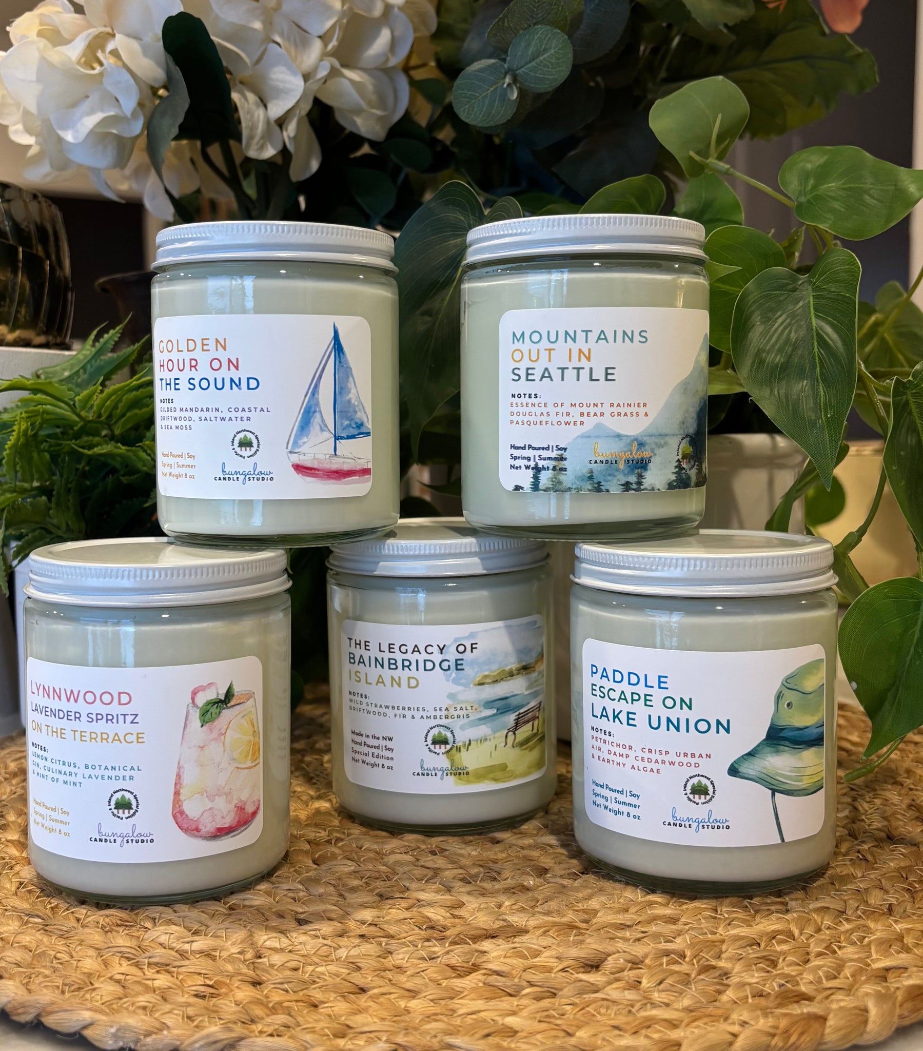 Iconic scenes and experiences of Seattle are captured in these candles.