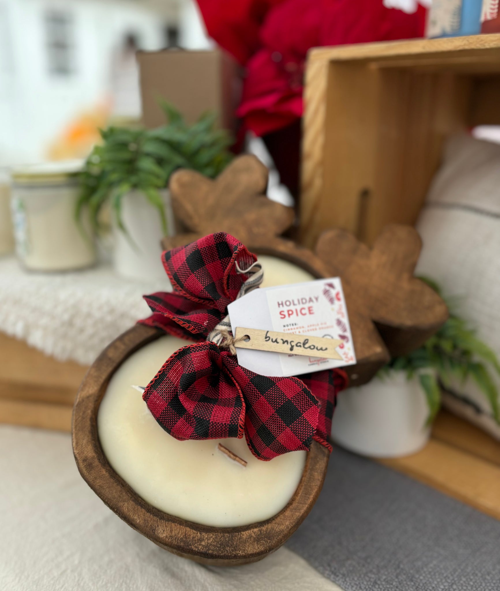 Wood Dough Bowl Candles in Festive Holiday Shapes